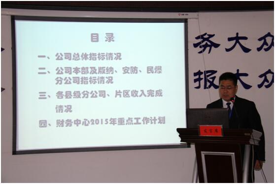 會議首先由公司副總經(jīng)理段元鑫帶領參會人員進行企業(yè)三大作風口號和手勢訓練;隨后財務總監(jiān)對2014年度經(jīng)營計劃執(zhí)行情況及各業(yè)務模塊計劃目標完成情況進行了披露;緊接著各中心、分公司負責人對2014年度工作完成情況及2015年度工作計劃進行了報告;會議第四項議程,由公司副總經(jīng)理對各業(yè)務模塊工作報告進行了點評及工作安排;最后,公司總經(jīng)理進行了總結性發(fā)言,要求各中心、分公司緊緊圍繞集團戰(zhàn)略發(fā)展目標和公司五年規(guī)劃,做實保安傳統(tǒng)業(yè)務,把握技防、物防新興業(yè)務,團結一致,銳意進取,為全面完成2015年總體工作部署和目標任務,譜寫大眾保安輝煌業(yè)績新篇章而努力奮斗!