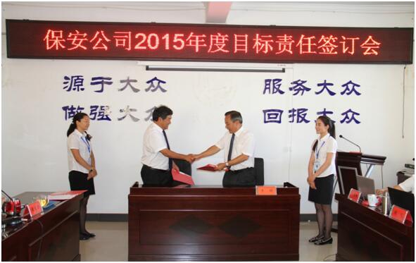 為充分體現(xiàn)目標(biāo)與責(zé)任、目標(biāo)與效益相結(jié)合的管理原則,調(diào)動(dòng)公司全體員工的積極性,保證公司年度目標(biāo)任務(wù)順利實(shí)現(xiàn), 2015年5月29日上午8:30時(shí),大眾保安公司在公司四樓會(huì)議室舉行2015年目標(biāo)責(zé)任書(shū)簽訂儀式。儀式由公司行政總監(jiān)主持,公司總經(jīng)理、副總經(jīng)理、各中心總監(jiān),版納分公司、安防分公司、及各縣級(jí)分公司相關(guān)人員共70人出席了簽字儀式。