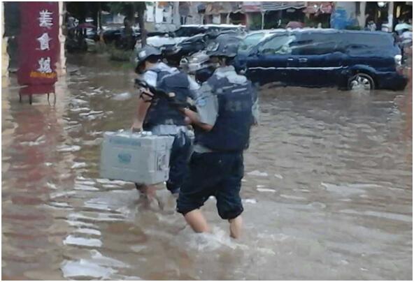 2015年7月20日凌晨3:00時(shí),西雙版納州景洪市突降暴雨,導(dǎo)致景洪市城區(qū)各大街區(qū)被淹,深水區(qū)達(dá)1.5米。為保證景洪城區(qū)9家銀行客戶的金融網(wǎng)點(diǎn)能按時(shí)正常營業(yè),云南大眾保安服務(wù)有限公司西雙版納分公司迅速啟動(dòng)《武裝押運(yùn)應(yīng)急預(yù)案》,組織開展武裝押運(yùn)工作,各押運(yùn)中隊(duì)押運(yùn)員嚴(yán)格按照《武裝押運(yùn)操作規(guī)程》,克服困難執(zhí)行武裝押運(yùn)工作,及時(shí)將款箱安全送達(dá)各銀行網(wǎng)點(diǎn),確保了景洪城區(qū)各大銀行網(wǎng)點(diǎn)正常營業(yè)。