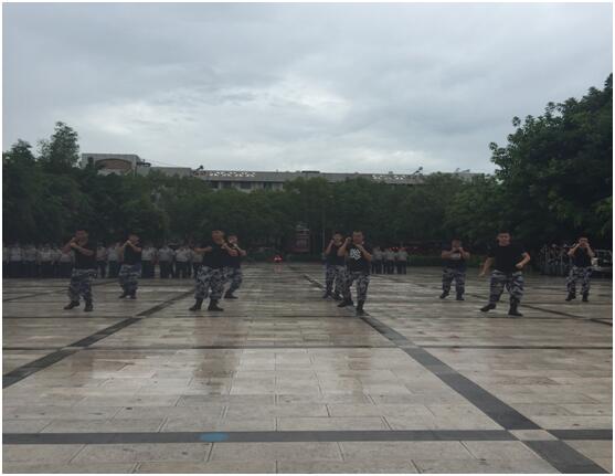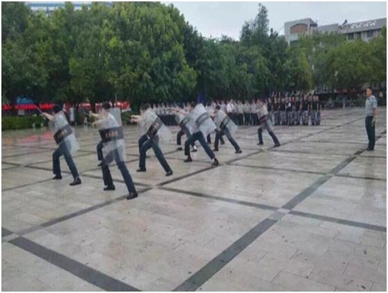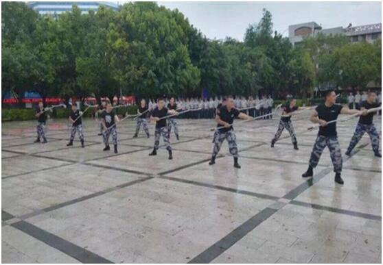 活動首先由人防保安隊伍退伍老兵進行了日常軍事訓(xùn)練中三大步伐的展示;隨后由文化娛樂場所保安員進行了擒敵拳、鋼叉防護等的展示;最后由機動大隊保安員進行了警棍盾牌操的展示。