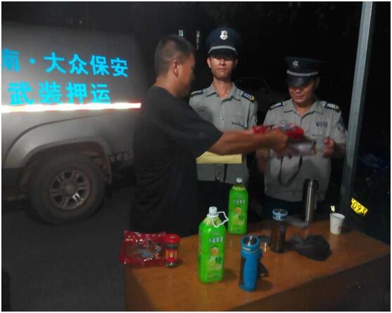 2015年9月28日,又是一年一度的中秋佳節(jié),大眾保安公司李明總經(jīng)理率副總經(jīng)理段元鑫、財(cái)務(wù)總監(jiān)陶凡、思茅保安服務(wù)中心總監(jiān)李小昌、營(yíng)銷(xiāo)總監(jiān)庹皓星、安防分公司總經(jīng)理李會(huì)忠等一行先后到普洱市委、市政府,普洱市人民醫(yī)院,普洱市糧食儲(chǔ)備庫(kù)、普洱市自來(lái)水廠及金融系統(tǒng)執(zhí)勤點(diǎn)等單位看望慰問(wèn)中秋佳節(jié)期間放棄和家人團(tuán)聚機(jī)會(huì)、仍然堅(jiān)守工作崗位的一線保安人員,并為他們送上了月餅、水果等慰問(wèn)品。