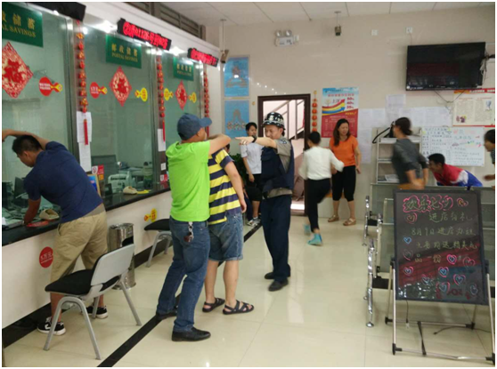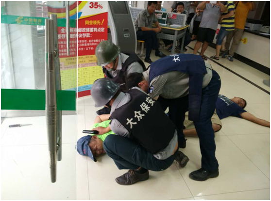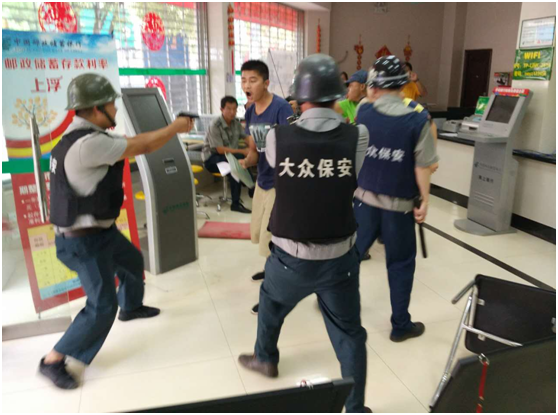 為增強(qiáng)網(wǎng)點(diǎn)保安員和銀行員工安全責(zé)任意識,提高網(wǎng)點(diǎn)保安員和銀行員工應(yīng)對突發(fā)事件的能力,2016年8月11日下午18:00時(shí),大眾保安公司寧洱分公司與寧洱縣郵政局在鳳新街營業(yè)網(wǎng)點(diǎn)聯(lián)合開展防搶、防爆、消防預(yù)案演練。