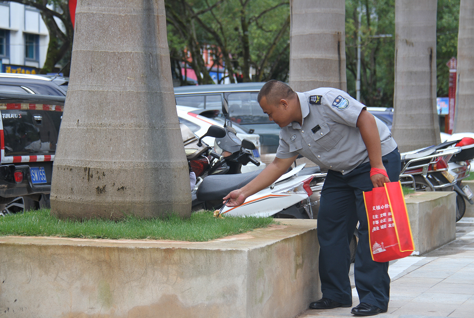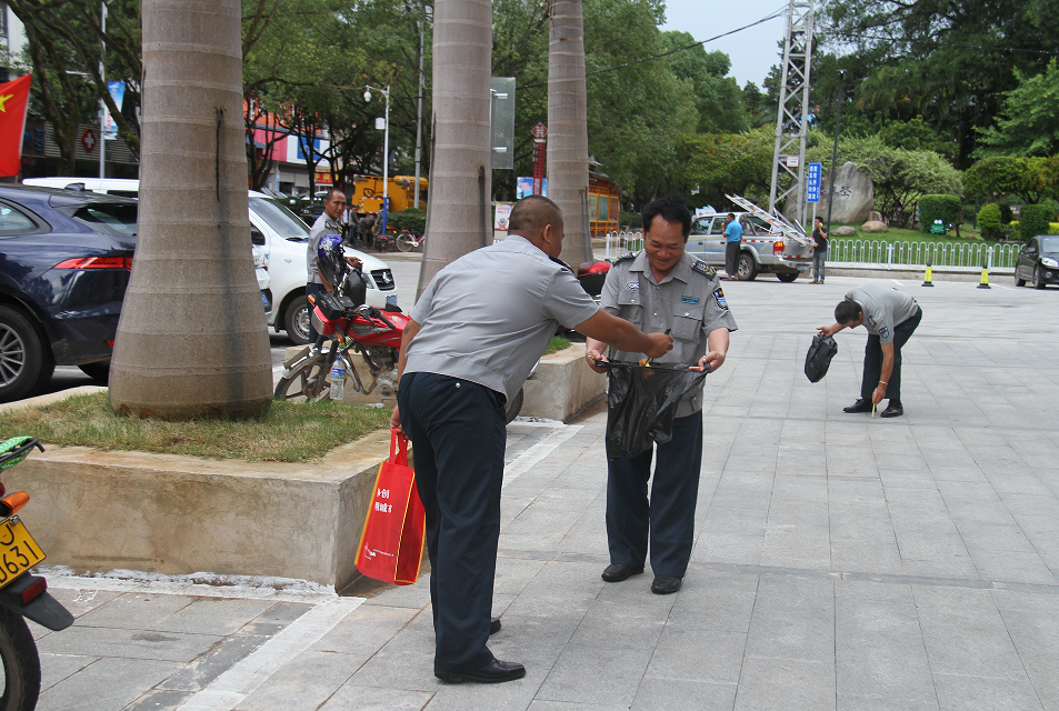 當天下午,他們從思茅世紀廣場出發(fā),沿振興大道、寧洱大道對人行道上的垃圾進行清理;對影響市容市貌的小廣告做了清楚;對個別不嚴格遵守“門前五包”責任制的商家進行了勸導。